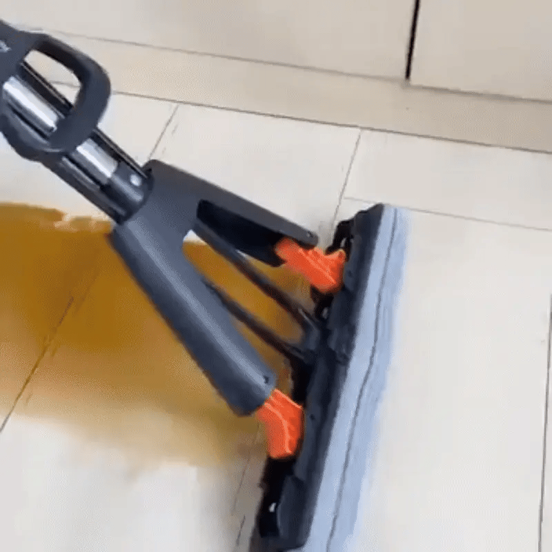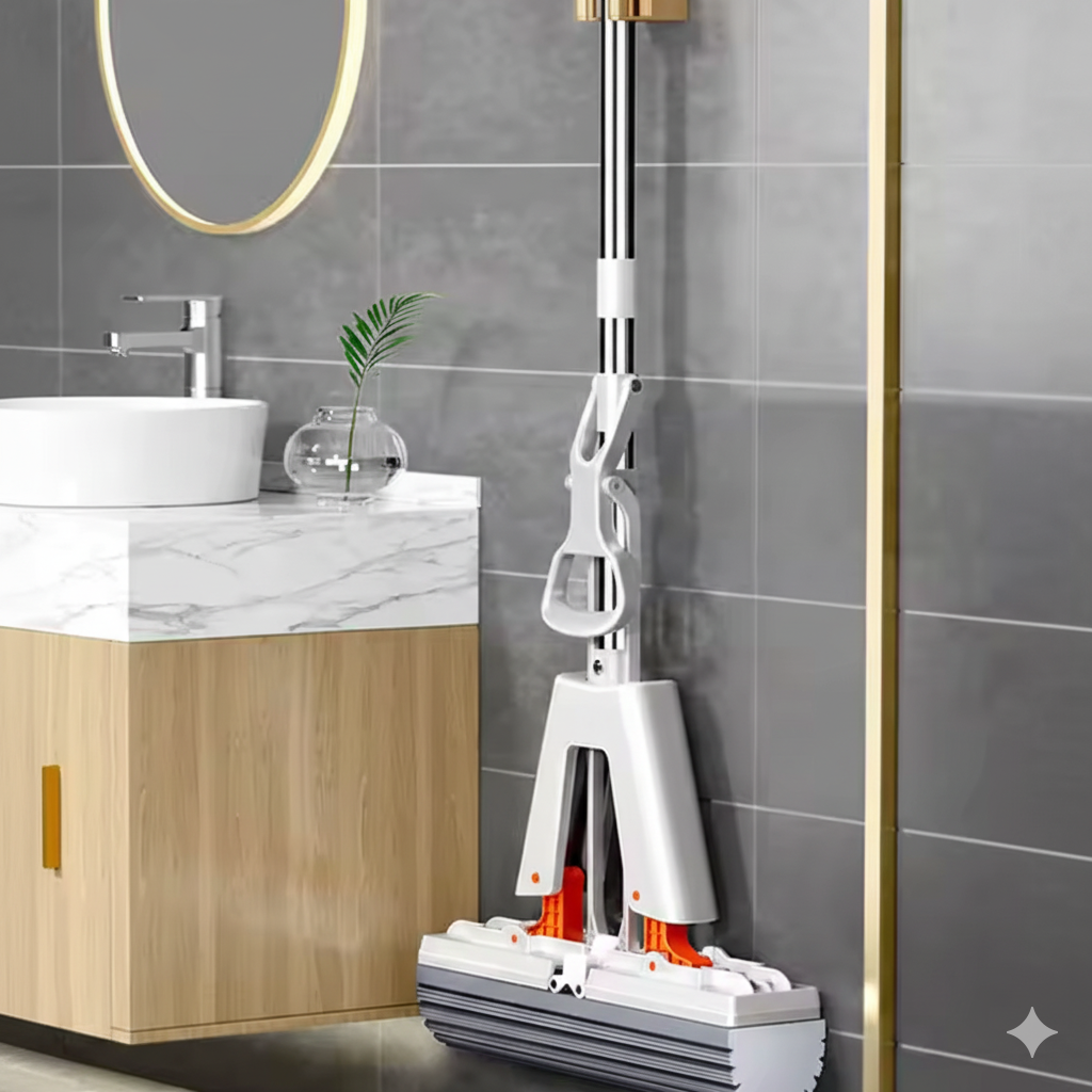 حطي راس الممسحة فالسطل ديالها وبركي على اليد (Lever) باش تعصر الماء، بلا ما تقيسي الماء بيدك نهائياً.